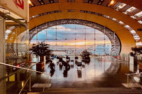 シャルル・ド・ゴール空港:第1ターミナル初めて行ったときはビックリした驚きの構造、映画にも出てきた中空部を走るエスカレータ、ラウンジは上層階にあるが 設備は今一、ANAはこのターミナルを利用で他会社のラウンジを使っている。 |