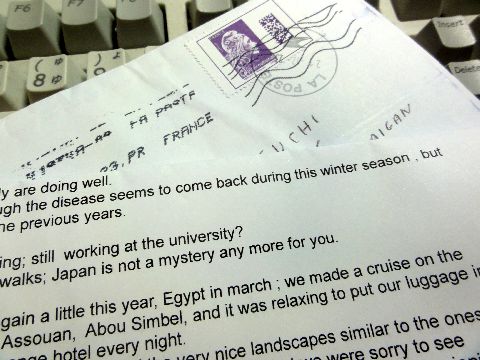 音信不通だったSさんから手紙が来た昨年末にクリスマスカードを送るも音信不通?だったフランスのSさん、手紙が来てどうやらメルアド変更の通知を するのを失念していた当方のミスが原因のよう、ゴメン!元気そうでエジプトのクルーズツアーやアイルランドなどへに行っているよう。 一人だけの孫はもう5歳になったとか。 |