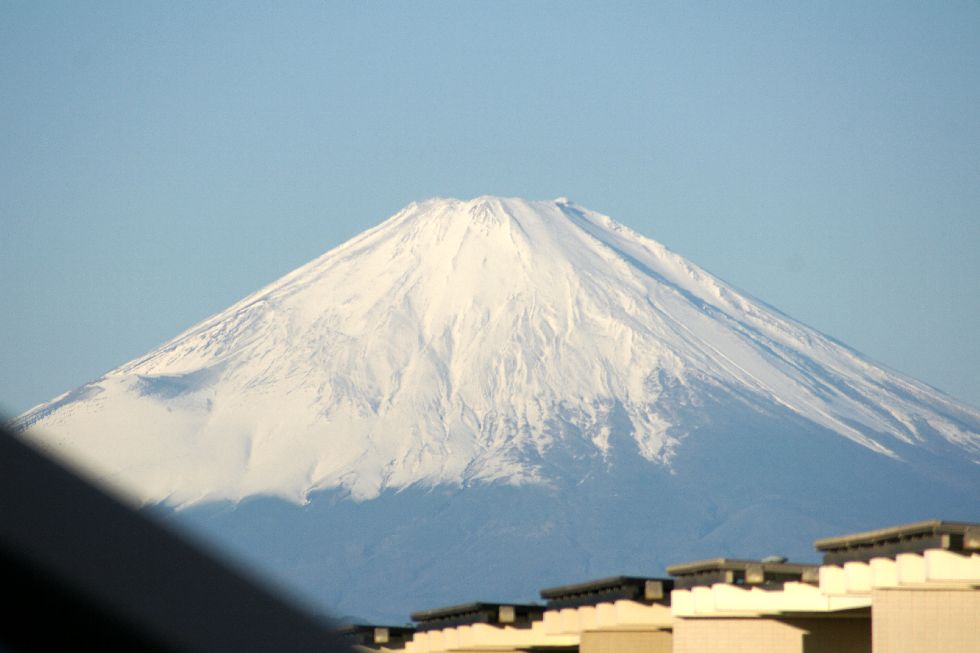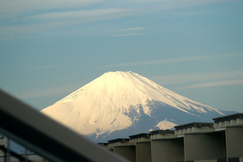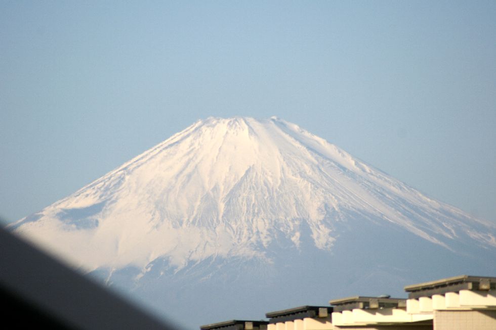 好天でお昼過ぎまで綺麗な富士山いつもならお昼前には雲が沸いて影が富士山におちるのだが今日は雲が無くお昼過ぎても綺麗な富士山。