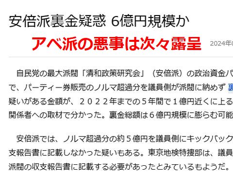 遂に安倍派議員が逮捕へパーティ券の売り上げのノルマ超過分を派閥へ納めず、裏金としていた議員が政治資金規正法違反で遂に逮捕。 |