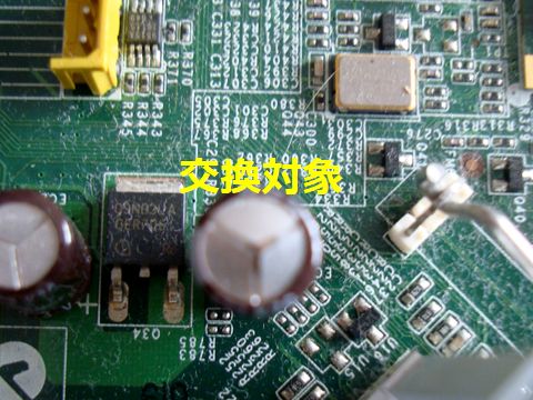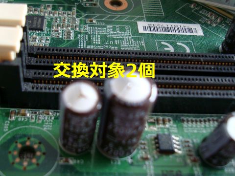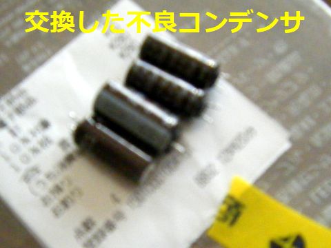 故障マザーボードのコンデンサ交換頭の膨らんだ4個の電解コンを久しぶりに半田こてを握って交換、スルーホール基板なので結構面倒、 まあ何とか基板を傷めず交換完了。 |