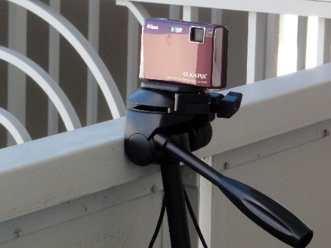 微速度撮影の続き普通の三脚にカメラを付けて微速度撮影することに、でも工夫しないとカメラ位置が都合よくいかない。 |