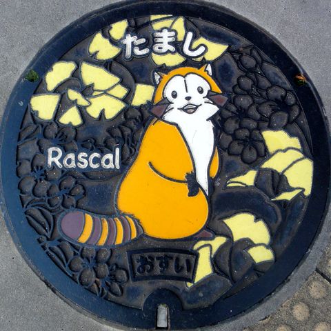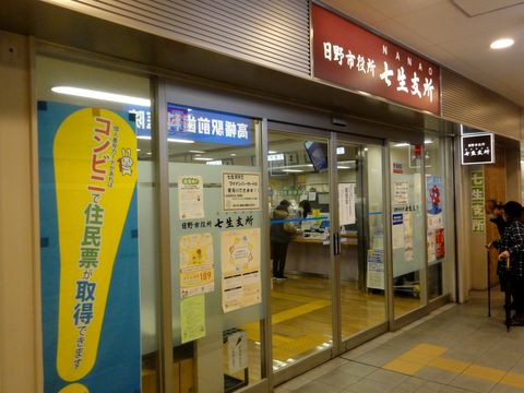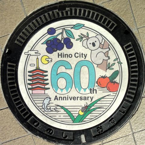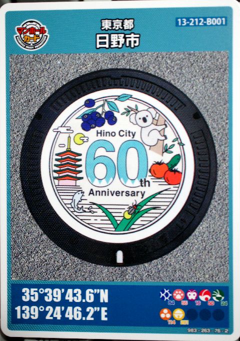 マンホールカード:日野市2高幡不動駅の京王ショッピング街にある日野市役所七生支所で配布、マンホールは駅前西端にあった。 |