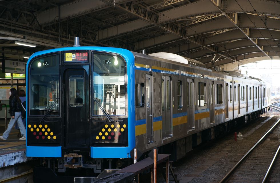 鶴見駅にて撮影やはり最近のワイドボディ車からするとひと昔前の車両のような印象を受ける、103系時代に戻ったような感じ。 |