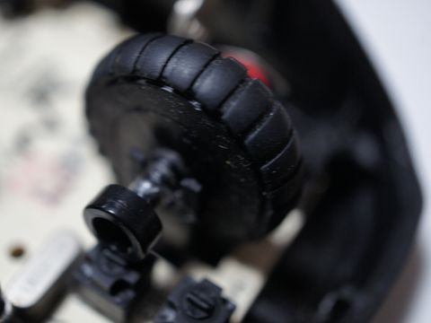 スクロールホイールが不調、再度分解整備スクロール操作が思うように動かない(時々逆走する)ので再度分解してチェック、ホイール軸に繊維分?が 絡んでいたのでピンセットで除去、良くなった気分もするが真実は不明。 |