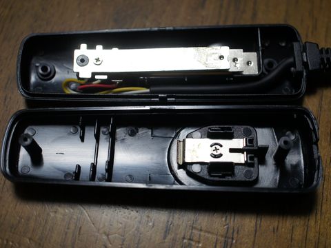α700のリモコンスイッチ分解押しボタンを押すと2段階で、フォーカス>シャッターとONする単純な仕組みのスイッチ。 これがカメラ内のスイッチと並列に入っているだけのよう。 |