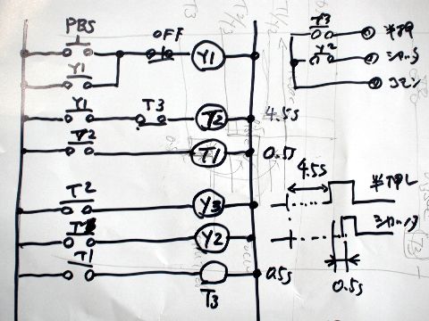 手持ちのPC(PLC)でやってみるか希望時間間隔のタイマを動作させ、2段階アクションで接点を出力すれば良さそう、でも大げさ? |