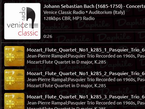 Daphileでイタリアの放送局を聴く朝は最近FMでやっている英会話を聴くようにしている、ヒアリング力がかなり低下しているのは 間違いないので、このイタリアの放送は当然イタリア語でさっぱりだが。 |