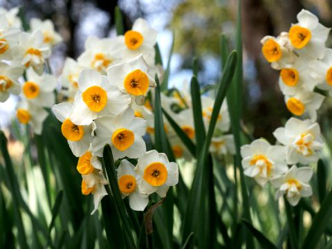 水仙もほぼ満開で綺麗今年は300段の階段を一回の休憩で登り切った、山上の道にはツバキや水仙の花あり。 |