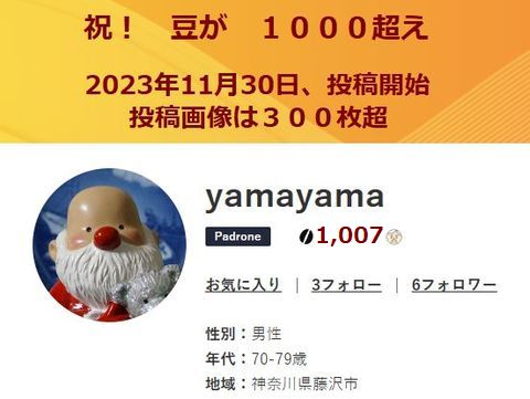 beansが500超え、アップロード制限が300にやっと101枚目を投稿、評価のマメも500超えに、次のターゲットは1000だが大分遠いなあ。 |
