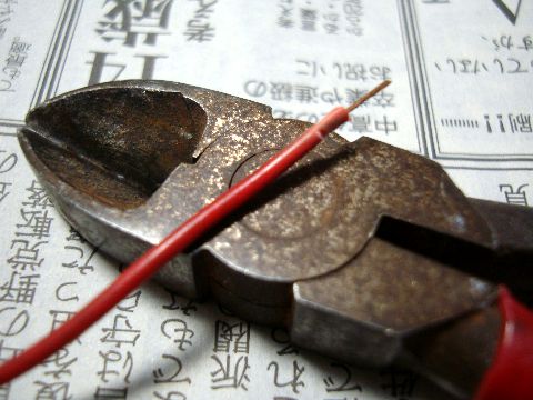 切れたクリップコードの修理もう何度目かの修理、電池のかつ入れが出来ないことから断線が発覚したもの。 |