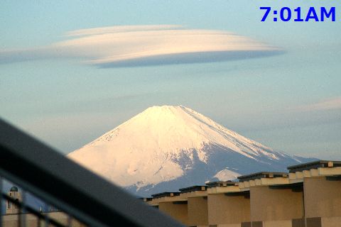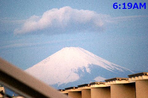 あと一息で1000だが今日は朝から30分おきに富士山を撮影、これを10枚まとめて組写真としてアップ。ずっと傘雲が形を 変えながら山頂に掛かり続けた。 |