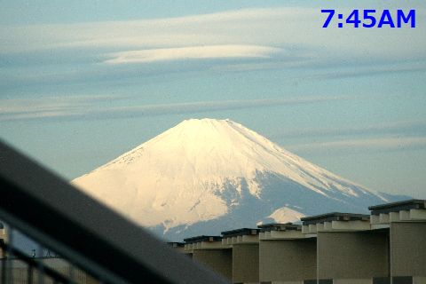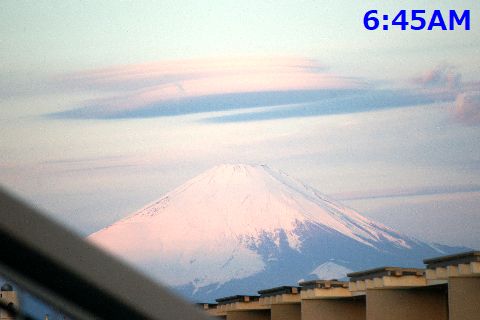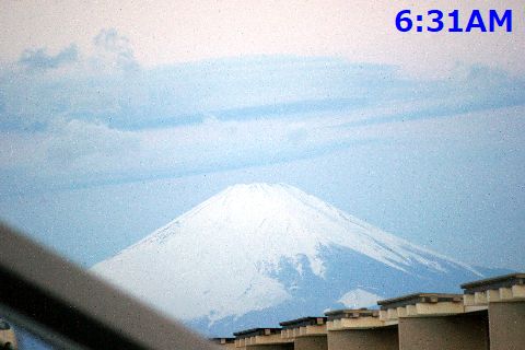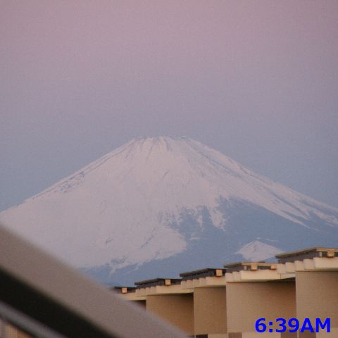 日の出時間の微速録画南側ベランダに南東向きに三脚を立て日の出前の朝6時ころから撮影。太陽が非常に明るいのでハレーションになってしまう。 再生ファイルは25%速度に変換し、再生時に25%速度設定をしなくても見られるようにした。 夕景の微速録画北側ベランダに三脚を立て富士山の午後3時から5時までの様子を撮影、三脚の位置からベストショットからはやや遠い。 |