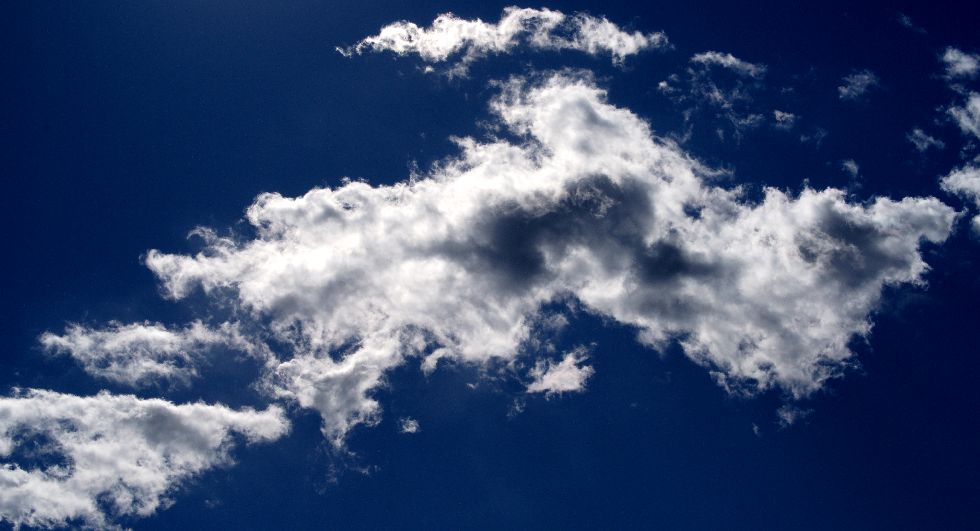 強い太陽できらきらの雲少ない雲は強い太陽光でキラキラして見える、夕方までこの綺麗な空が続くかな?