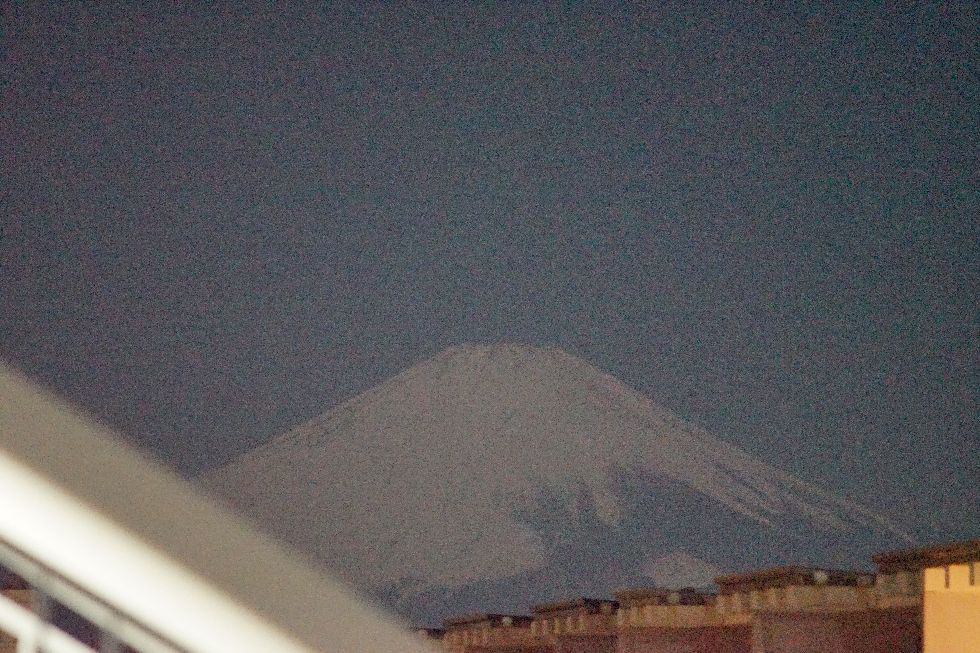 深夜午後10時前の富士山ISO感度25600なのでさすがにザラザラ感は否めないが、それでも写るのは偉い! |
