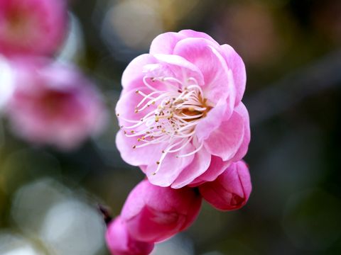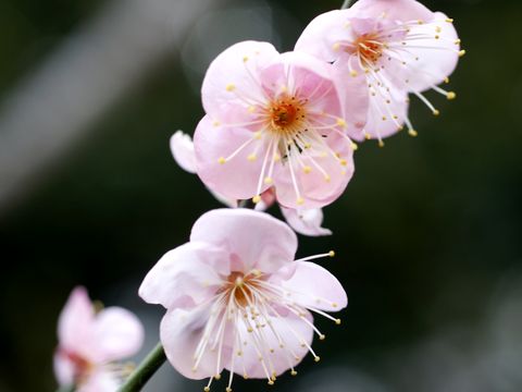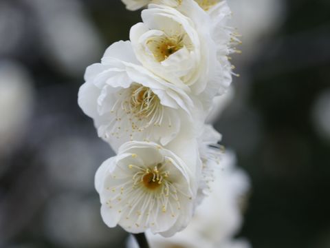 まだまだ咲始めだがフラワーセンタは今頃が一番花が少ない時期、奥にある梅園はまだ咲始め、1本だけ結構花が咲いている 木もあったが。梅林のある場所に陽が当たるのは朝早い短い時間だけ、α700内蔵のストロボを利用して撮影。 |