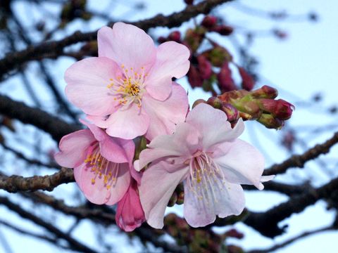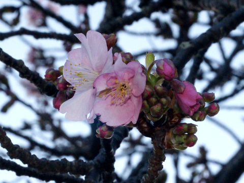 江の島山頂の河津桜山頂公園にある数本の河津桜はまだ咲始めたところ。 |