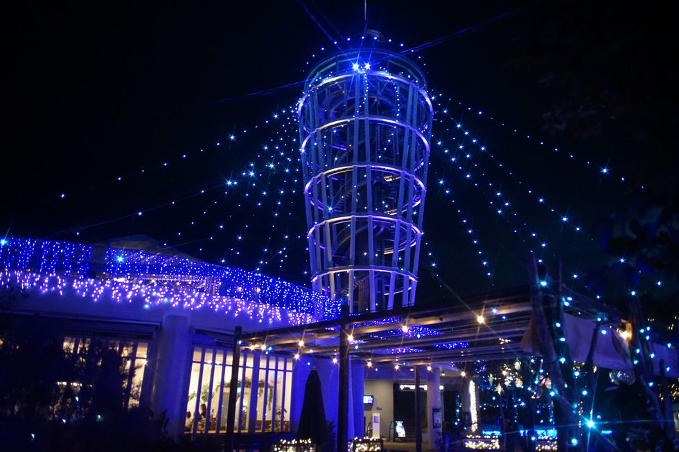 江の島「湘南の宝石」を見に今年からイルミネーションの光源が全部LEDになったようでタワー頂上からロープに付いたランプが きらめきが弱くなった、光が全方向へ出ていないのが原因のよう。 使用カメラ:SONY αU+LA-EA3+Minolta 24-85mm Zoom+スタークロスフィルタ |