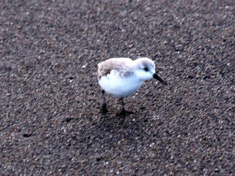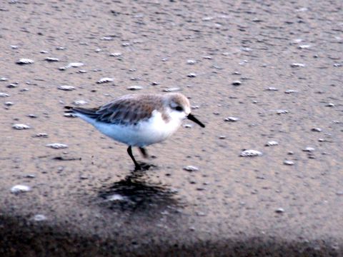海岸では浜千鳥がお食事中時々見かける浜千鳥の団体さん、波打ち際で打ち上げられた餌?を啄んでいる。波の動きに合わせて上がったり下がったり。 |
