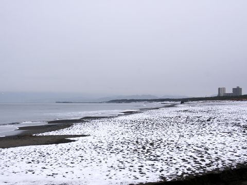 雪が降った海岸へ行ってみた久しぶりにワークマンの雨靴を履いて海岸まで、公園には子供たちの作った雪ダルマの残骸が複数。 |