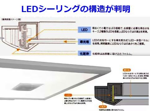 LEDシーリング、構造が判明導光板とLEDの取付け構造が解る資料を見つけた、これならLED張替えで修理も出来そうなので試みるか? |