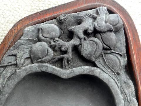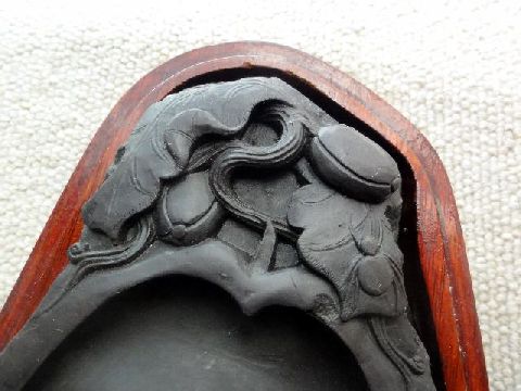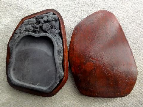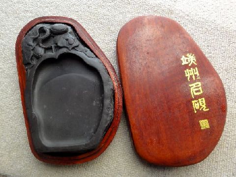 もう一つの硯もヤフオクへ出品品名も産地も無表記だが中華製は間違いない、どこで貰ったのかは失念、安っぽいので600円で出品中。 |