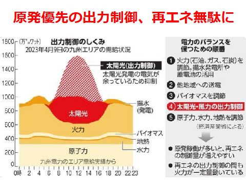 再生エネルギ軽視が明白な出力制御の多発で無駄広がる自前の原発優先で再生エネルギの拡大や活用には冷淡で後ろ向きな電力会社の本音が丸見えな事象。 |