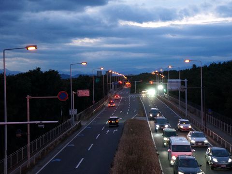 夕暮れの湘南道路ちょうどマジックアワーなので撮影してみた、空の色合いがちょうど良い感じ! |
