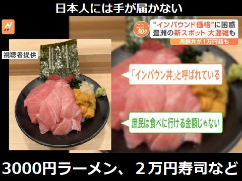 インバウンド景気?収入増えず沈む国・日本年収増えず沈む国・日本、インバウンド客には格安でお得な国だが、ホテルや飲食代は値上がり。 海外旅行は10年前の倍以上の価格になり、もう行くのは台湾位を除いて無理そう。 |
