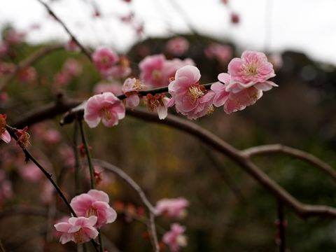 梅はまだ半分くらいの咲き具合午後3時半ころ梅の開花状況を見て撮影、まだ半分くらいしか咲いていない感じ、これから順に咲いてゆく。 |