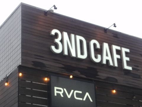 これって何と読む?いつも散歩のときに見掛けるカフェの名前、一体何と読むのか?今日の海岸は南風の強風でほぼ人はいない状況。 |