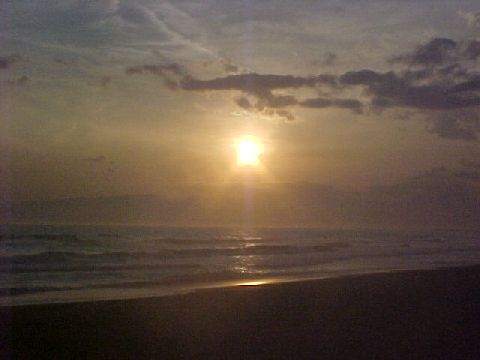 夕方の海岸でも撮ってみた夕方でも撮影に支障はなさそう。35万画素なので640*480ドットしかない。 |