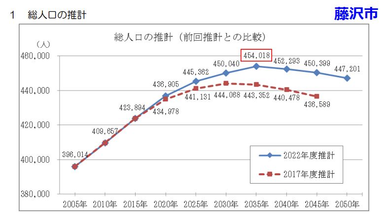 藤沢市はまだ暫く人口増加、その後は高齢化進む人口増で小学校のマンモス化が問題になっている、少し経てば減少に転ずるとの見込みが外れて、 クラス数が増え続け、校庭のプレハブ教室は増えるばかり。余裕のある学校もあり早急に学区の見直しが 必要なのだが、対応が遅いとの非難は免れない。 |