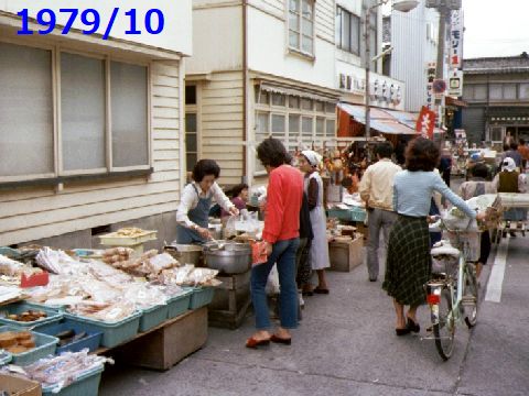 1979年の朝市通りの様子朝市を歩いた時の写真、奥の家の風景から朝市通りの行き止まり近い場所だろうと推定、 下は同じくGoogleMapで震災前の様子、全焼したので今は何も残っていないだろうが。 |