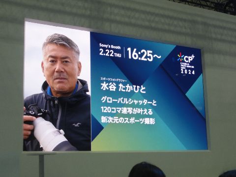 小雨の中、CP+ 2024へSONYのイメージセンサクリーニング(無料)のサービスを申し込んだので小雨の中、みなとみらいの 展示場へ、センサクリーニングの依頼と受け取りの合間にブースをざっと見るという感じで見学。 CANONの毎秒40コマのアピールはSONYの毎秒120コマ(α9V)の前に霞んでいる。 |