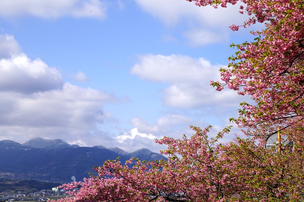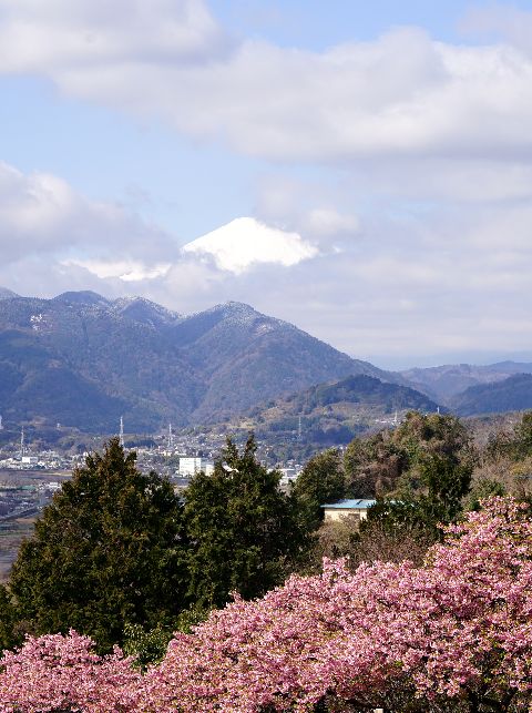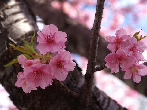 松田の河津桜を見に好天で10時過ぎに着いた松田駅前はバスに長蛇の列、3本位待ってやっと乗れて公園の駐車場まで移動。 今年から公園へ上る道から一般車を排除したので比較的スムーズな運行に。