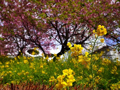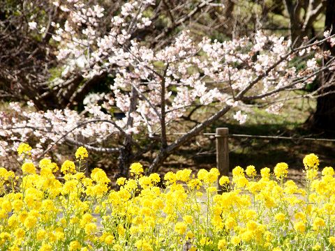 玉繩桜と菜の花@大船フラワーセンター午前中にバス乗り継ぎで大船フラワーセンターへ、玉繩桜がほぼ満開の状態、残念ながらメジロの姿はなし。