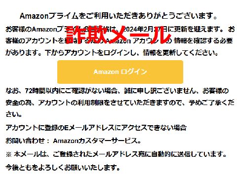 次々来る詐欺メール加入してもいないサービスを騙ったものは即削除だが、イオンを騙る(IDとPW搾取)には一瞬騙されかけた、 直ぐにPWの変更をして被害が出ないよう対策。まあ懲りずに沢山来る、車もないのにETCカードを騙るもの、 加入していないAMAZONのPRIMEサービスなど多数。発信アドレスを見れば一目瞭然で詐欺と分かるが。 |