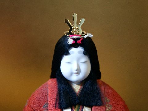 もう一つの雛飾りも下は顔部分の切り出しアップ、髪飾りの金属の質感はよく出ている(使用カメラはα900)。 |