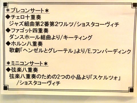プレコンサートや休憩時間のミニコンサートも開演前のプレコンサートが3組、休憩時間のミニコンサートが1組。 |