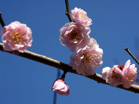 こちらは桃の花だろうこの色と形は桃の花のよう。 |