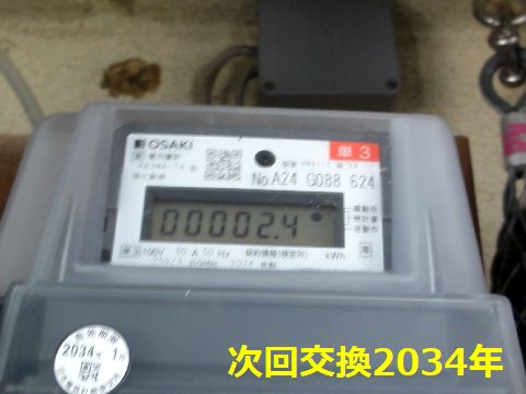 電力量計の交換:次回満検は2034年次は10年後、まだ元気に居住しているかは不明の将来だ。 |