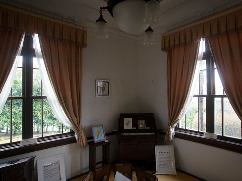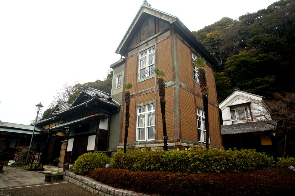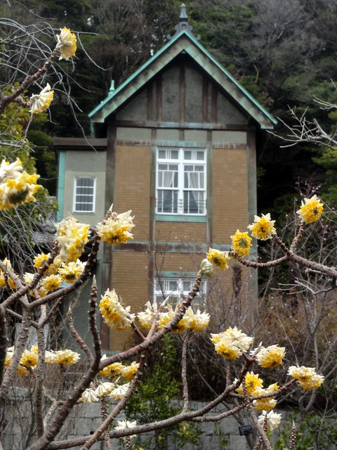 和風と欧風が融合した建物左の和風住宅と右の洋風の塔がくっついた不思議な家、元の持ち主は金属を商って財をなした人らしい。 |