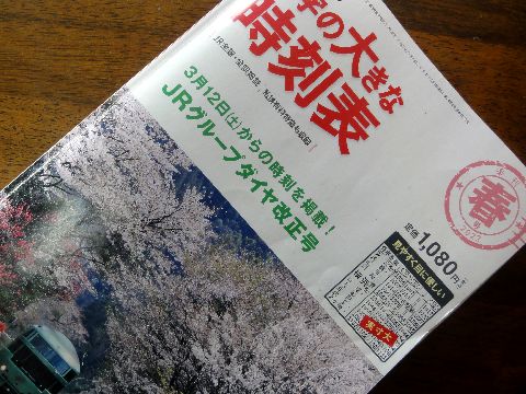 春のダイヤ改正、時刻表を注文昨年は近辺での大きなダイヤ変更はなかったのでパス、今年はJR東海の静岡区間が大改正なので注文した。 熱海<>浜松直行列車が大幅増となり静岡県区間を大幅に乗り通しやすくなる。 |