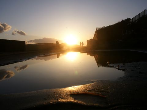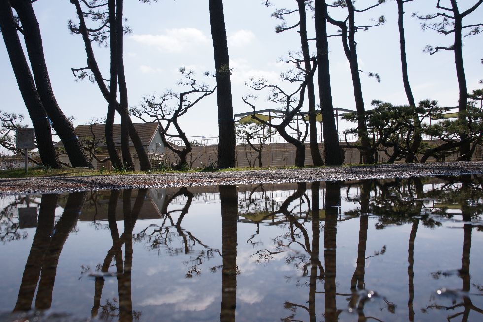 水たまりが海に見える?地面スレスレに撮影すると水たまりが大海のように写り不思議な感じの画像となる。