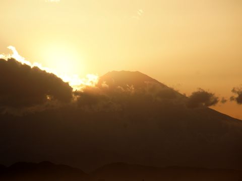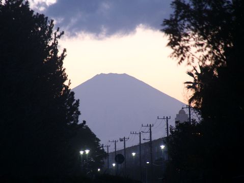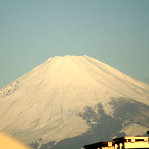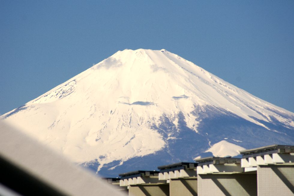 綺麗な冬の富士早朝(朝8時過ぎまで)だけ見える綺麗な姿の富士山、すぐに雲が掛かり全景は見えなくなることが多い。 |