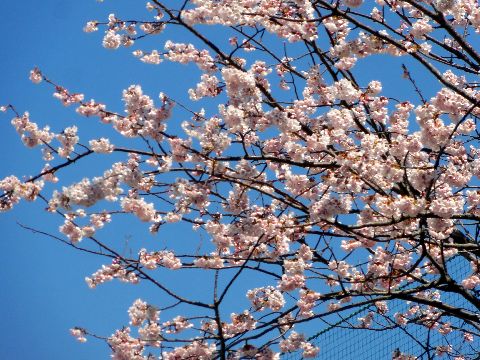 公園の桜が咲き始めた公園の桜のうち池の南側にある数本が2―3部咲の状態に、来週には満開になりそう。 |