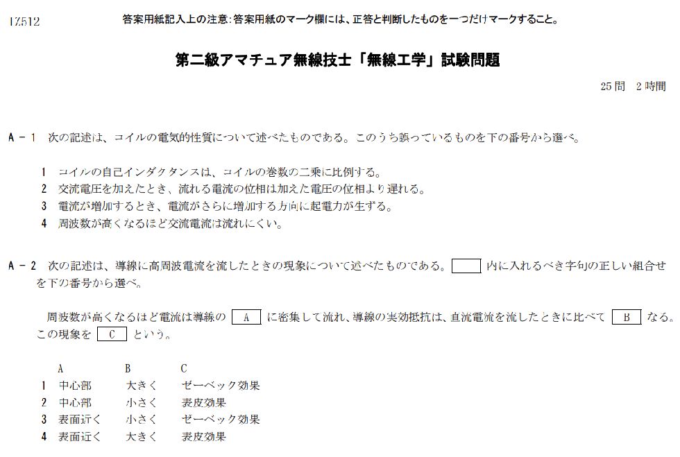 2アマ試験、簡単そうだがある人のYoutubeで「電話級試験を通った人なら1アマ取るのは簡単」という情報をみつけて、実際の試験問題の見てみた。 確かに昔は必須だった電信の試験は無くなり、筆記試験も記述式から選択式でマークシート方式に変わっているので難易度は 大きく下がったよう、でも受験料が7−9000円と高いので使わない免許は要らないのかも。 問題A-1は「表皮効果」の問題で簡単、A-2も難しくはない、電波法は少しばかりは勉強しないと駄目そうだけど。 |