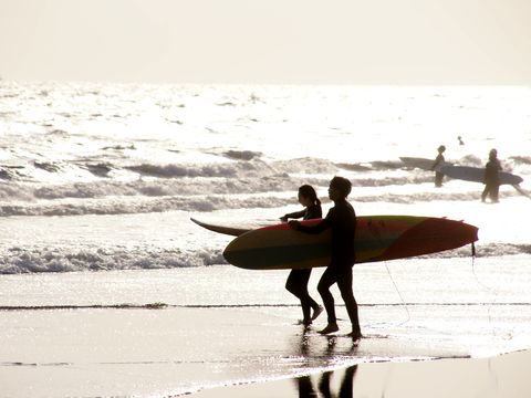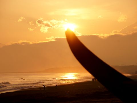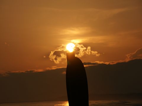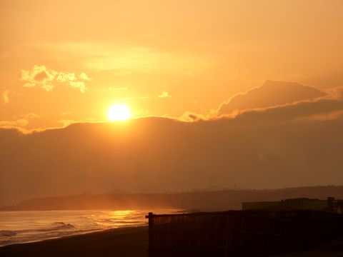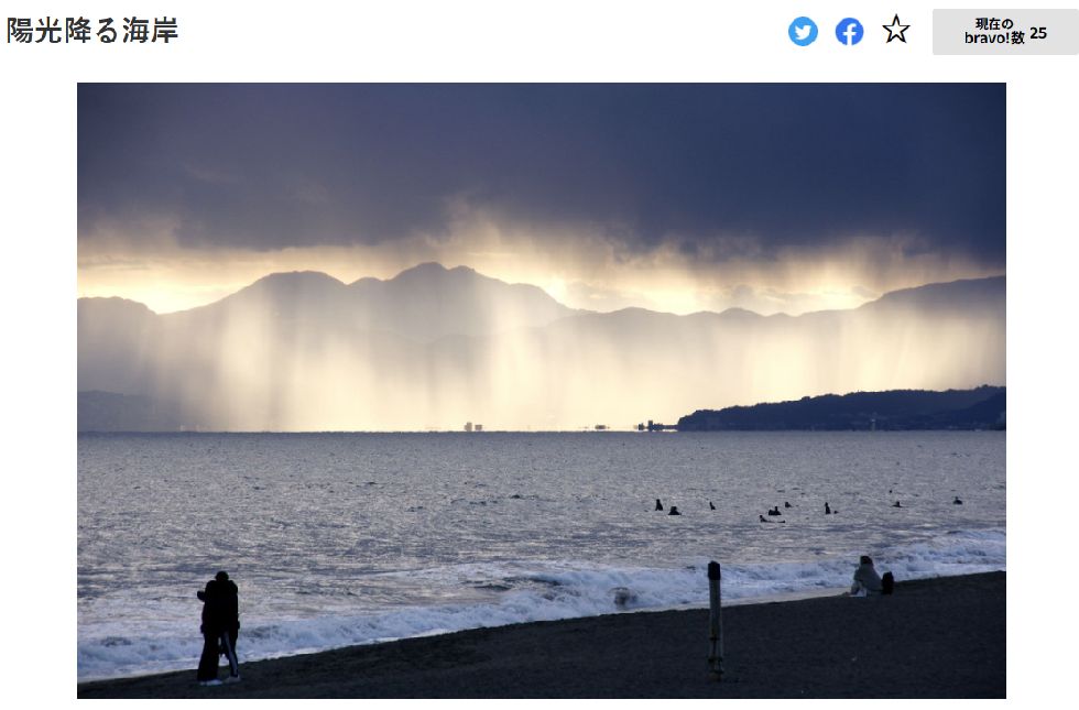 「陽光降り注ぐ海岸」、BRAVOが25個付いた久しぶりの投稿?夕方の散歩で撮影した夕景から選んで投稿、ちょうど抱き合う?カップルやサーファーも映り込んでいて 我ながら良い構図だったと思う。