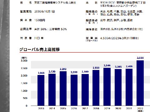 もう東芝・三菱の名は要らない?順調に事業規模を拡大してきたが2023年はやや減少気味で2,129億円という規模、それに伴う事業構成の見直しとも取れる。 |